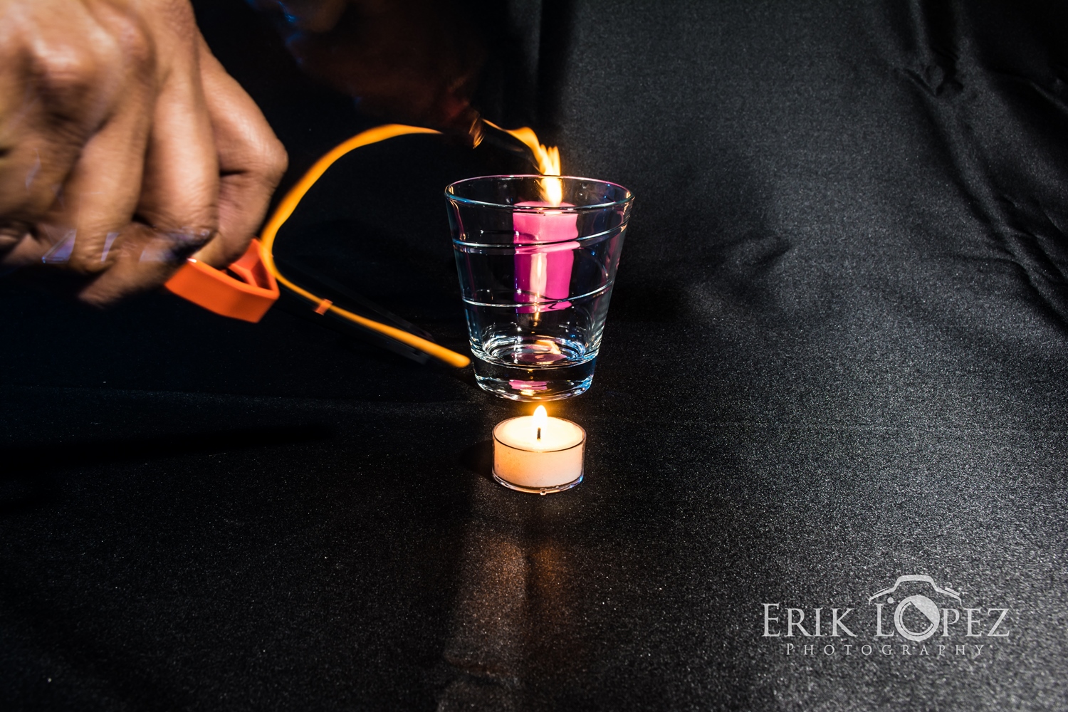 La fotografía 051 fue el resultado de levantarme tarde. Justo salí de la cama, caminé hacia la puerta y alcancé a notar el sol a través de la persiana, así que corrí a la sala por la cámara y la vela. Desde que el vidrio de la ventana se rompió; siempre he creído que parece una cara de toro… o un espermatozoide, aún no lo termino por decidir. Simplemente me tiré al suelo y busqué hacer que la luz del sol pasara a través del ovoide formado por el pegamento… intentando formar un ojo.