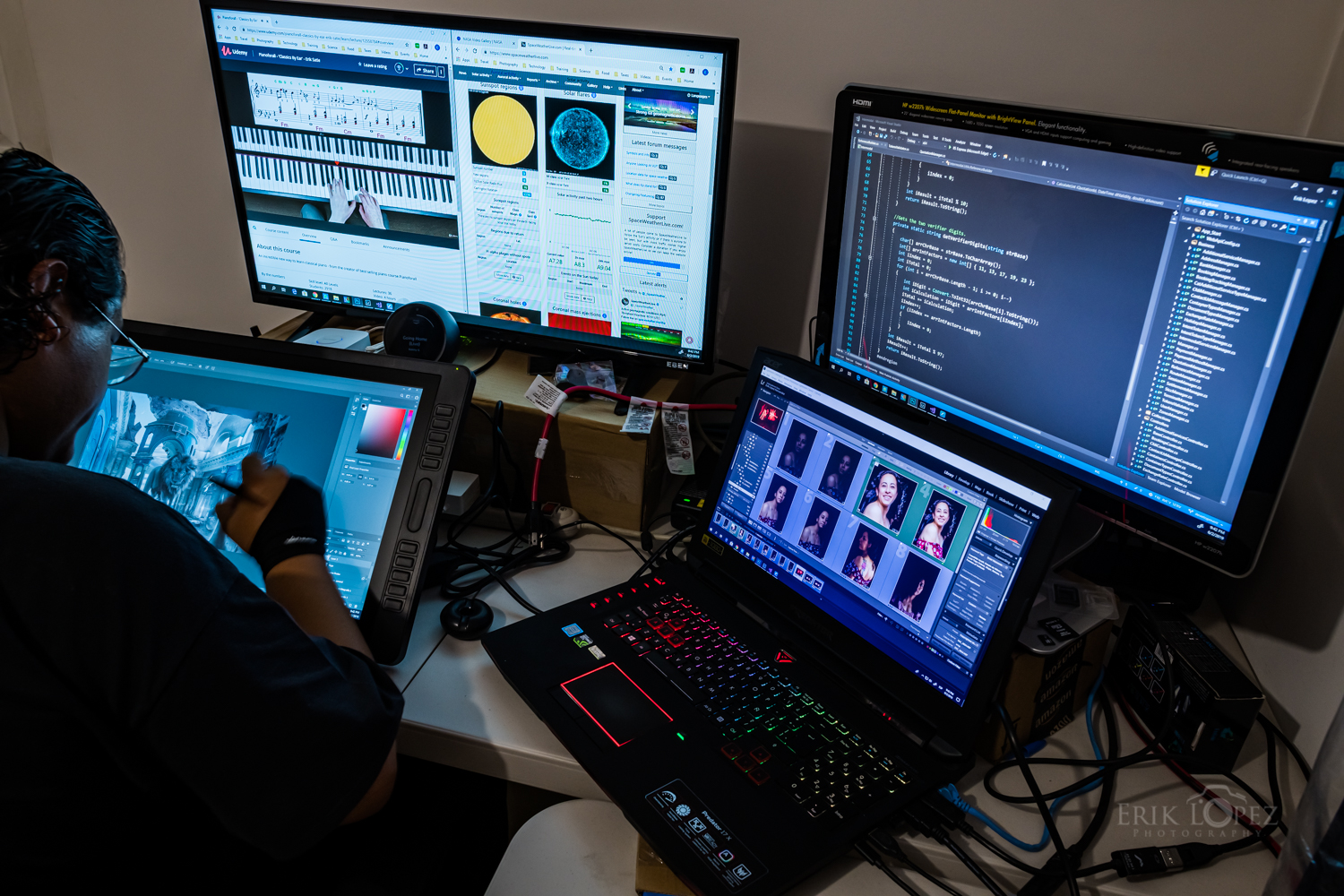 El almuerzo salió de una producción para el restaurante KO MA. No sé que almuercen ustedes; pero, últimamente, yo he almorzado cosas fascinantes. La luz de la decimo séptima imagen también tuvo que ser retirada. Sin embargo, la obscuridad soy yo. El paisaje, si recuerdan, es de un viaje místico que hice el año pasado. Una de las mejores fotografías infrarrojas que capturé ese día. A veces me sorprendo de que no tengo tantas fotos de nubes, si me la paso mirando el cielo. Siempre que salgo de un edificio, lo primero que hago es mirar al cielo, no importa si es de día, de noche, con o sin lluvia. Pero esa nube estuvo modificando drásticamente la luz en nuestra sesión con modelo para la revista. El retrato fue una producción que hice para una amiga que, poco a poco, ha ido confiando en mi capacidad como fotógrafo. Además, quien expresamente me dio autorización para compartir su fotografía.